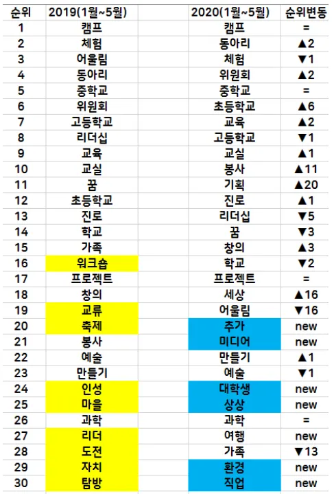 'μΊ ν', 'λμ리', 'μμν', '체ν', 'μ΄λ±νκ΅', 'μ€νκ΅', 'κ³ λ±νκ΅'κ° κ·Έλ°λ°μ.