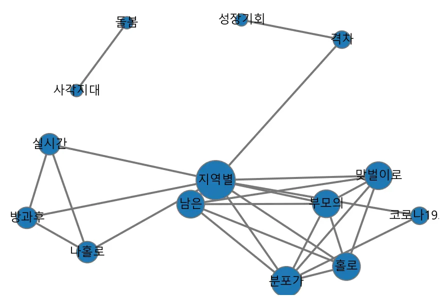 : μλ΅μμ μ μμ΄ λμ΄λλ κ²μ μ€μκ°μΌλ‘ 보면μμ. 'μλ°±κ°κ° λλ μ견λ€μ μ΄λ»κ² μ΄ν΄λ³΄μ§?' μΆμλλ°μ. μμ κ°μ΄ μλν΄λΌμ°λ, λ€νΈμν¬ λΆμμ νμ©νλ 'μ£Όμ λ¨μ΄'μ 'λ¨μ΄ κ°μ μ°κ²°μ±'μ΄ λμ λ€μ΄μ€λ€μ. λ§μ μλ΅μ λΆλ€μ΄ μ½λ‘λ19λ‘ μΈν μ²μλ