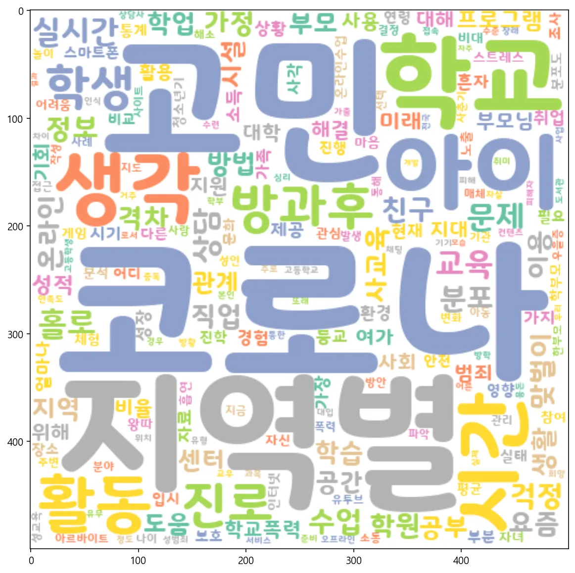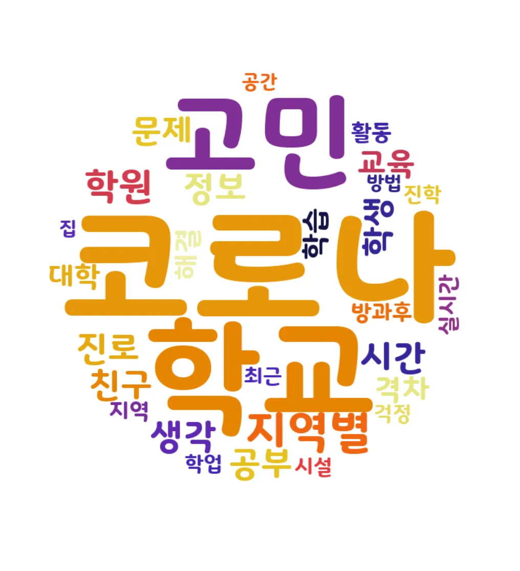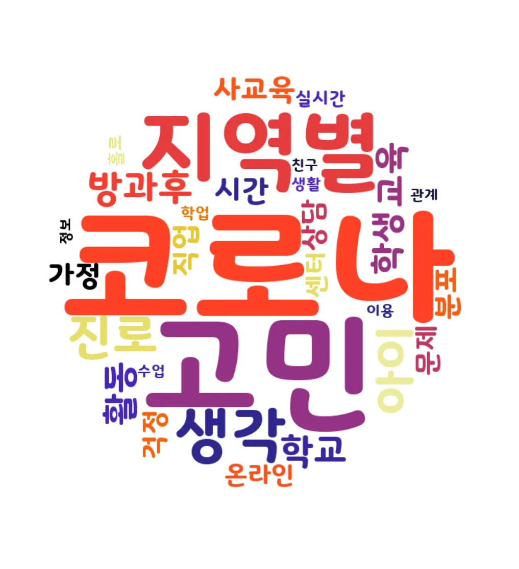 : 'μ½λ‘λ', 'μ§μλ³', 'κ³ λ―Ό', 'νκ΅', 'μμ΄', 'μκ°', 'λ°©κ³Όν' λ±μ΄ λ¨μ΄ ꡬλ¦