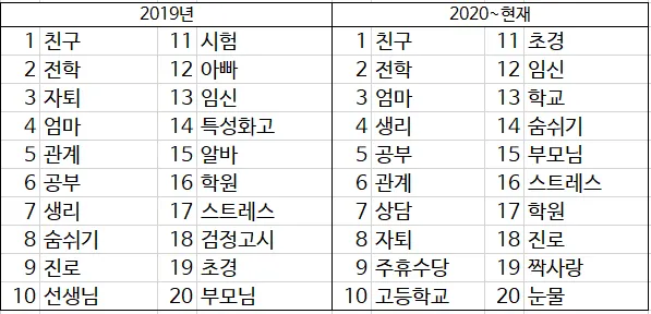 ๊ฐ์ฅ ๋น๋ฒํ๊ฒ ๋ฑ์ฅํ๋ ํค์๋๋ '์น๊ตฌ' ์๋๋ฐ,