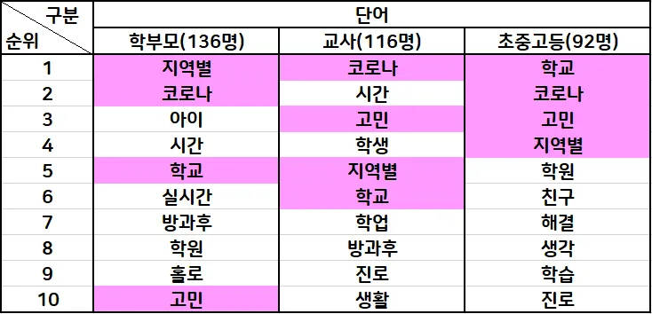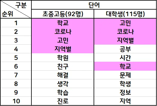 μ΄μ€κ³ λ±μ κ²½μ° 'μΉκ΅¬', 'ν΄κ²°', 'νμ', 'νμ΅' λ¨μ΄κ° λ¨λ