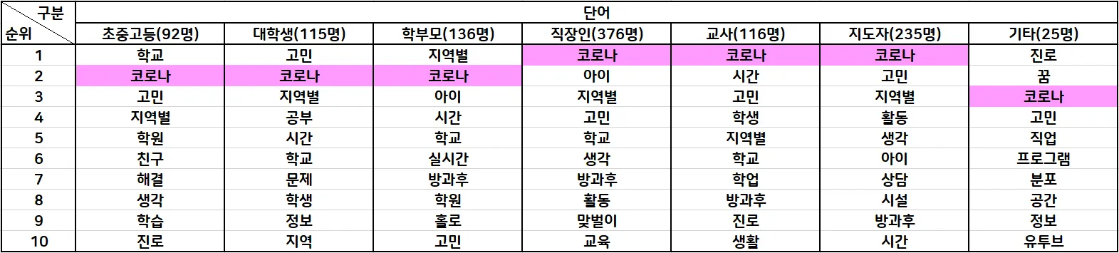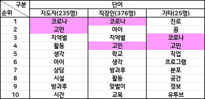 μ€μ¬μΌλ‘ λΆμν κ²°κ³Ό 'μ½λ‘λ'κ° κ³΅ν΅λ λ¨μ΄λ‘ λνλ¬μ΅λλ€.