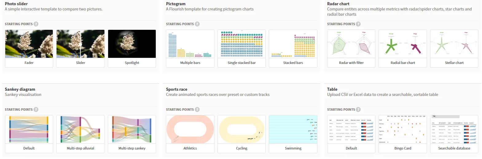 Flourish는 다양한 방식으로 데이터를 시각화하는 방법을 제공하는 사이트 입니다.