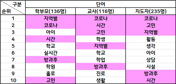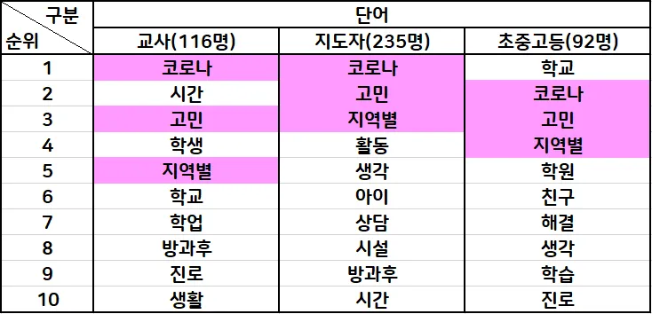 μ€μ¬μΌλ‘ λΆμν κ²°κ³Ό 'μ½λ‘λ'κ° κ³΅ν΅λ λ¨μ΄λ‘ λνλ¬μ΅λλ€.