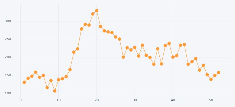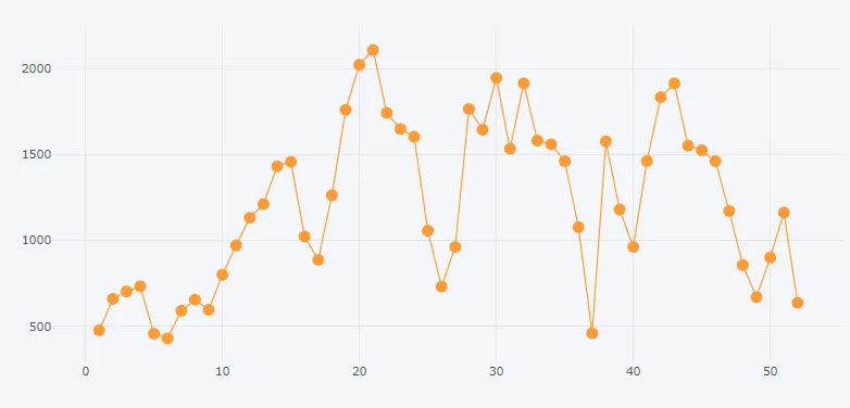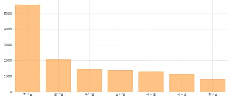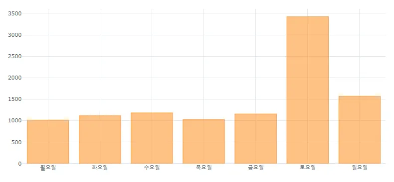 그래프만 보면 뭔가 2019년 그래프와 달라보이죠? 사실 똑같아요. 요일 순서만 바꿨거든요.